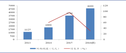 随着农村网民人数及网购人数的增加,农村居民网购交易额也呈高速增长。2013-2015年,调查报告农村网购交易额由1125亿元增长到3530亿元,年均增长率高达78%。根据阿里研究院预测,2016年农村网购交易额将达到4600亿元。我们认为,随着农村网购人数的持续增长,未来农村网购交易额或将进一步增长。