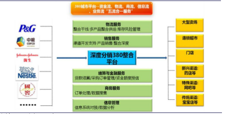 怡亚通的380平台在2008年决定进入快消品领域后,开始只是拿到了宝洁在深圳的经销商资格,由于公司出色的供应链管理能力(多年IT行业运营的积累),取得了宝洁的认可,因此进一步拿下了贵州的经销商资格。公司跟宝洁合作的过程中,积累了快消品行业的经验,也树立了行业口碑,慢慢的有越来越多的快消品品牌与怡亚通合作。而区域经销商也愿意加入380平台来获得上游品牌更多的认可。