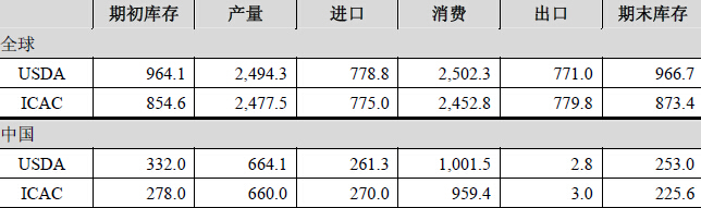 进入2011年,全球及国内市场棉花供需紧张情况逐步得到缓解。截至2011年6月,全球2011/2012年度棉花种植面积增加5%-10%,且生长未受到异常气候影响。2011年6月,根据ICAC和USDA预测2011/2012年度全球棉花常量可达2,700万吨左右,而全球需求量基本为2,600万吨左右,期末库存达到1,000万吨以上,届时全球棉花库存/消费比将升至40%以上,达到较为安全的水平,从而将成为抑制棉价上扬的主要因素。2011/2012年我国棉花需求量将保持在1,000万吨略高水平,产量将达720万吨左右,2011/2012年度供需缺口将出现收窄可能。2010/2011年度全球/中国产销存预测单位:万吨