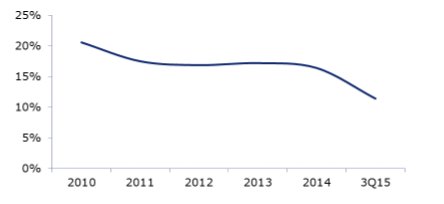 财险保费增速将明显放缓。2015年前三季度财险行业保费增长11.4%,较过往年度16%以上的增幅明显放缓。由于中国财险保费超过70%的来源仍是车险,2015年新车销量增速放缓直接拖累财险保费增速。预计2016年财险行业保费增速为10%左右。