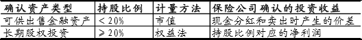 险资通过举牌大幅提高单一标的持仓的一个主要原因是出于会计处理的考虑:如果持股上市公司超过20%,通常可将该股票持仓确认为长期股权投资,用权益法计量,这将为保险公司的账面投资收益带来3个好处:
