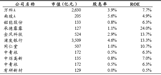 被举牌上市公司(市值百亿以上)股息率和ROE