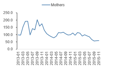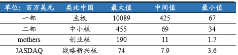 市场化估值水平,看重基本面:近两年来,一部和二部市盈率保持在20倍上下,两部的市盈率走势基本一致。一部的上市条件要比二部的条件高,新上市股票原则上先在交易所二部上市交易,每一营业年度结束后考评各上市股票的实际成绩,据此作为划分部类的标准;因此一般来说一部的基本面要优于中小板,一部估值水平也略高于二部。Mothers仅面向高成长、新兴技术型企业,估值水平高达百倍,近几年来日本股市走牛,Mothers板盈利水平增长较快,估值也逐步趋于理性,从近200倍降至目前的60倍左右。