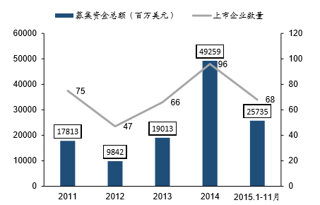 中国企业赴境外上市情况(2012年至2015年1-11月)