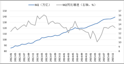经济增速换挡背景下,实体经济融资难的问题迫使监管层维持货币政策宽松,连续降准降息向市场注入流动性。央行数据显示,M2供应量2015年底达到139.23万亿,且2015年下半年以来月度增速均超过13%,增速显著加快。银行信贷额度宽松,或进一步推动不良贷款规模上升。预计短期内货币政策仍将较为宽松,新增流动性供给或推高潜在不良资产规模。