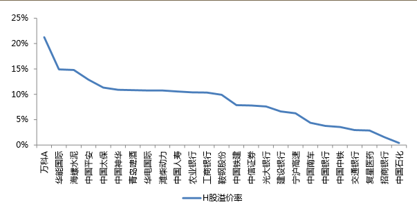 A+H股中港股溢价较高的大盘蓝筹股