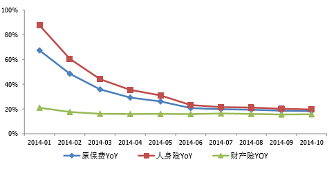 1)前10月,原保费收入累计1.73万亿元,同比+18.2%(前值+18.6%),其中财产险5869亿元,同比+15.7%(前值+15.6%),人身险1.15万亿元,同比+19.6%(前值+20.2%)。