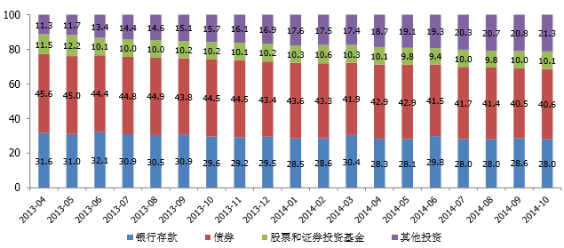 3)保险资金余额较9月底增加334亿元,在总资产中占比较9月91.3%略有下降至91.2%。其中银行存款2.46万亿元,占比较上月-62bps(前值+63bps),债券3.57万亿元,占比较上月-+8bps(前值-90bps),股票和基金8925亿元,占比较上月+13bps(前值+16bps),其他投资1.87万亿元,占比较上月+41bps(前值+11bps)。