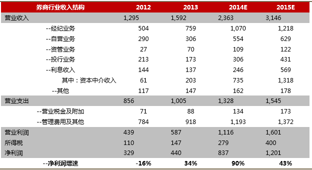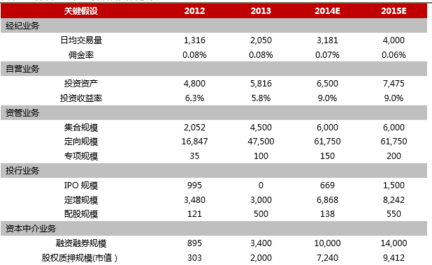 在股市逐步形成财富效应的前提下,日均交易量在不断增长,预计明年4000亿日均交易量有较大概率实现,融资融券规模也有望持续增长;此外,随着市场回暖,预计IPO家数明年也有望大幅增长;在牛市中券商的自营业务也有望实现较高的投资收益率。