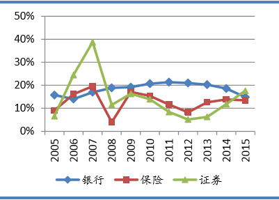 2005-2015年金融行业机构ROE对比