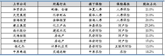 上市公司介入保险业务概况