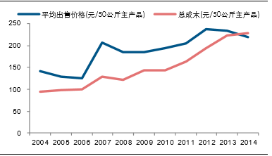 中国大豆总成本与平均收购价格对比
