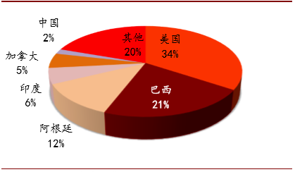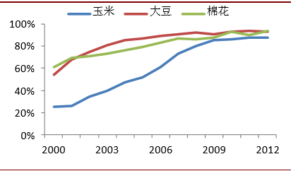 美国是世界第一农业大国,也是种业第一大市场。美国自然资源丰富,农业生产规模化、区域化、专业化、现代化水平高,玉米、小麦、大豆等种植产业集中度高,优势明显,农产品产量、贸易量均是世界第一,这也其拥有全球领先的现代化种业密不可分。据国际种子联盟(ISF)统计,美国农作物种子市场价值高达150亿美元,世界第一,约占世界种子市场价值(450亿美元)的34%。美国商品种子市场主要包括玉米、大豆、棉花、蔬果等作物,最近十几年美国转基因作物种子快速发展,目前美国92%的玉米、94%的大豆、94%的棉花都是转基因种子,但水稻、小麦、马铃薯等作物转基因种子尚未放开。美国种子市场非常集中,孟山都、先锋、先正达等巨头占据了大部分市场。