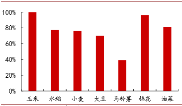 良种商品化率仍有提升空间,定价机制不合理。截止2014年我国主要农作物种子平均商品化率达到70.07%,商品化率最高的是玉米种、棉花种和油菜种,其中玉米种更是达到100%全覆盖,最低的是马铃薯,商品化率约39.24%。国际上种子商品化率平均为60%,发达国家则高达90%以上。从这方面看,经过十几年的种子市场化进程,我国种子商品化率已然进步很多,但是相比于发达国家仍然有可以提升的空间,究其原因主要有两点。一方面是农民的种植习惯和思维仍然需要时间转变,很多人还愿意自留种,另一方面也是因为在加工、包衣、包装等方面比较差,大量粗制滥造的种子在市场上流通,不利于农户合理地选择购买和使用种子。此外,种子价格整体偏低,也是由于大量低价低质的种子存在和套牌、倒卖种子的行为泛滥,导致高质量的种子卖不上高价格,严重削弱企业的盈利能力和研发积极性。目前国内玉米、水稻等杂交种子的种粮比大概在1:8-15左右,而小麦等非杂交种子则更低,远低于美国1:20-30的比例,种子费用在种植总成本中的比例仅有14%,与种子对农作物增产高达40%的贡献率严重不匹配。