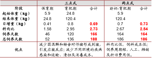 养殖技术:美国目前已经开始使用“断奶——育肥一栏到底”的二点式饲养模式,美国中西部的新建猪场均采用这种模式。我国仍以三点式饲养模式为主,将母猪、断奶保育猪、生长育肥猪严格分开在三个独立的猪舍中饲养以控制疾病的传播。