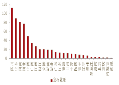 发标区域维度看,四川超过100个,山东、河南、河北等在80个左右,山西、广西、浙江在30-50个,其余均在20个以下,表明四川省已全面启动确权工作,山东、河南、河北等地开始全面推进,其余省市刚刚启动。