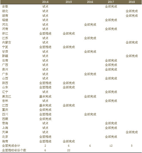 根据我们掌握的数据,截止2014年重庆和西藏2个地区已经完成土地确权工作,黑龙江、江西2个省份基本完成,四川、山东、北京、海南、宁夏、陕西、浙江等7个省份全面推进,20个省份开始试点。