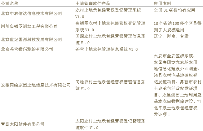 农业部首批认证的6家土地管理系统公司名单