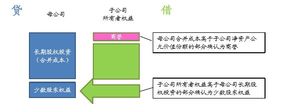 借:股本;资本公积;盈余公积;未分配利润;商誉