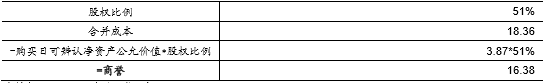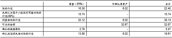 公司2008年4月收购北京博思瀚扬企业策划有限公司,在当期期末合并报表中确认商誉。根据商誉的定义有,商誉=合并成本-购买日北京博思瀚扬企业策划有限公司可辨认净资产公允价值*股权比例,具体计算过程如下表。