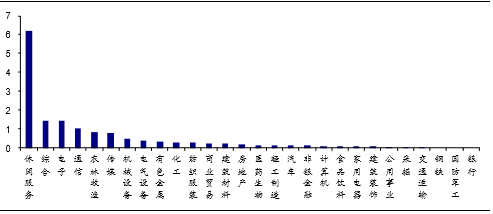 休闲服务、综合和电子行业商誉减值对业绩影响最大(%)