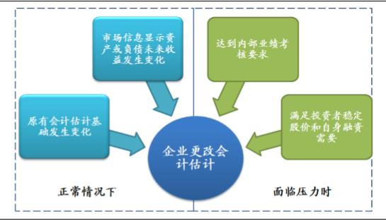 但是,会计估计变更也常常会被企业拿来用作其他的用途,尤其是那些面临巨大压力的公司。有些压力来自公司内部,如高管为彰显工作业绩或实现公司的配股、增发、规避ST、摘牌等,在正常利润不及要求时就有动力变更会计估计来增加会计利润;新上任高管在上任初期也有大额计提冲销给未来业绩腾挪空间的冲动。有些压力是来外部,比如上市公司需要配合二级市场维持股价等。