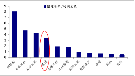 建筑子行业:固定资产/利润总额