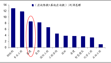 建筑子行业:(应收账款+其他应收款)/利润总额