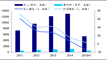 2015Q1-Q3亚厦业绩增长情况(根据附注调整)