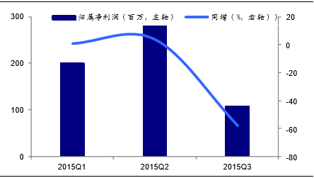 2015Q1-Q3亚厦业绩增长情况(未经调整)