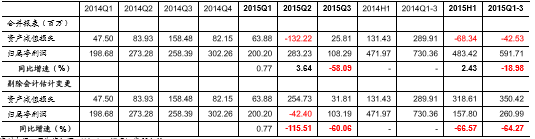 2015Q1-3亚厦股份变更会计估计业绩增长情况