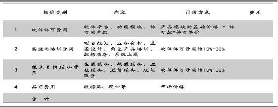 除了技术支持服务费每年收取外,软件许可费、实施与培训费、IT硬件等费用一般都需要的购买或是项目完成时付清。