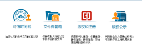 同时,该交易中心还提供综合综合了可信时间戳、文件保管箱、版权印注册和版权公示等手段为一体的版权认证体系,有助于版权人进行自主存证。