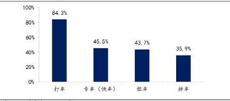 分析报告从用户使用各移动用车服务占比情况看,用户使用手机打出租车的比例最高,使用专车(快车)、拼车和租车服务的用户占比相对较低。艾瑞咨询调查数据显示,2015年使用打车服务的用户占比84.8%,使用专车、租车和拼车的用户占比分别为45.5%、43.7%、35.9%。