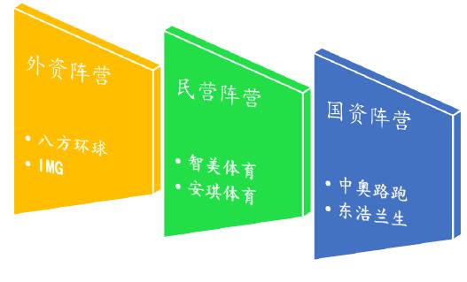 马拉松赛事运营是马拉松经济的重要组成部分,是盘活马拉松经济的核心环节。就目前格局而言,路跑赛事运营公司大致可以分为三大阵营:一是以智美体育为代表的民营资本阵营,二是以中奥路跑和东浩兰生为代表的国有资本阵营,三是以IMG和八方环球(Octagon)为代表的外国资本阵营。此外,很多三四线城市以及县级城市是由协会和地方体育行政机构举办,本文没有将其划归在三大阵营之内。短期来看,这些相对小规模的城市的马拉松赛事商业运作价值有限,重在提升城市形象和丰富民众健身休闲生活。