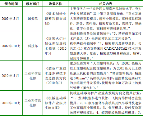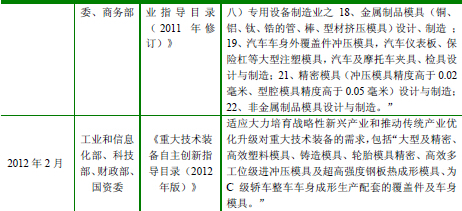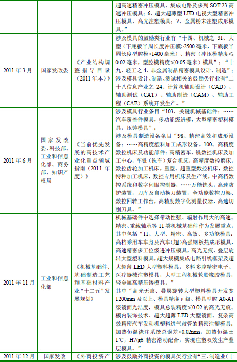 近年来我国发布的模具行业相关产业政策