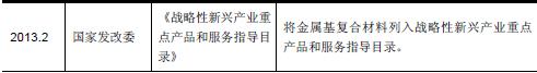 金属基复合材料制品包含众多现代工业生产过程中的重要加工工具和机械装备的关键部件,对提高现代工业生产效率,降低现代工业生产的能源消耗具有基础性作用。因此,支持金属基复合材料制品行业快速发展对提升我国现代工业及国民经济发展水平具有重要意义,国家近年来先后出台了一系列鼓励性政策,具体情况如下表所示:
